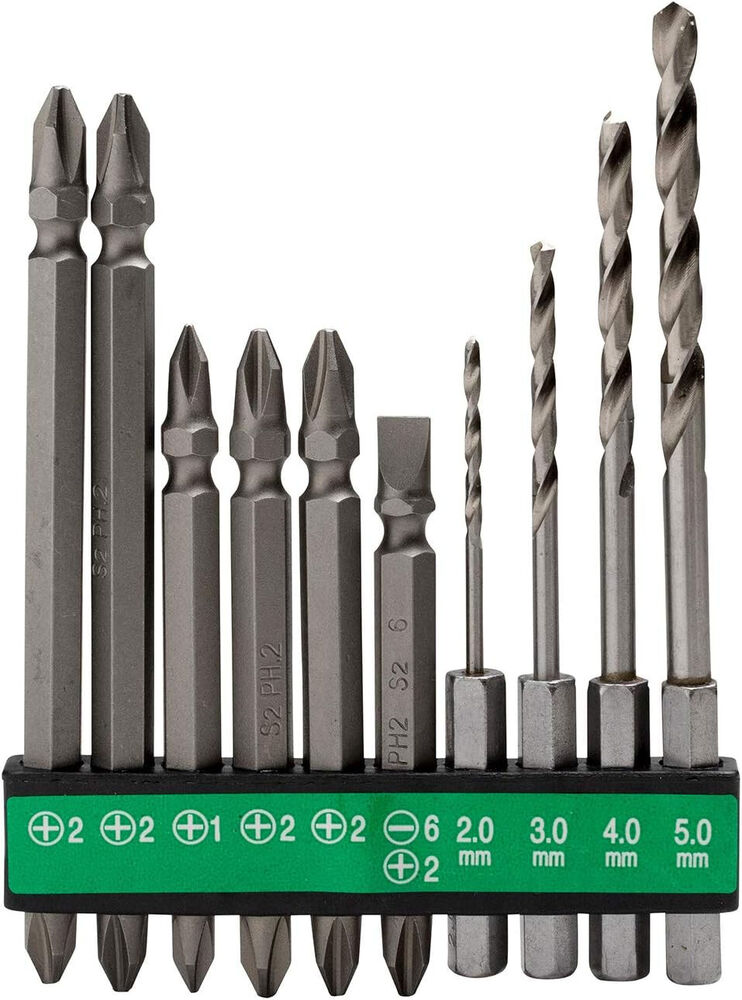 Driver bits come with a bit holder for convenient storage, and are compatible with cordless impact drivers